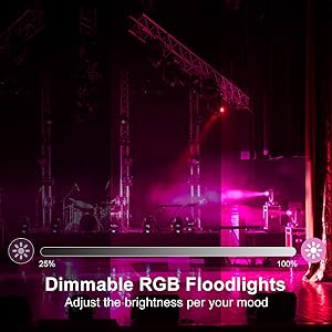 - 【DIMMABLE COLORS & MODES】 There are 12 colors and 2 modes (flash/smooth) for you to choose. With the 21-Key remote controller, you can control the led flood lights for favorite color, brightness, mode, color cycling speeds to match your theme and mood. One remote can control multiple rgb flood lights, and one flood light can be controlled by multiple remotes too.(Max 39.3ft/12m sensing distance & 360°sensing angle)